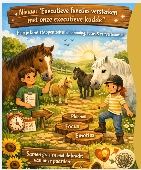 Tijdens onze unieke training De Executieve Kudde gaan kinderen spelenderwijs aan de slag met paarden om hun executieve functies te versterken.