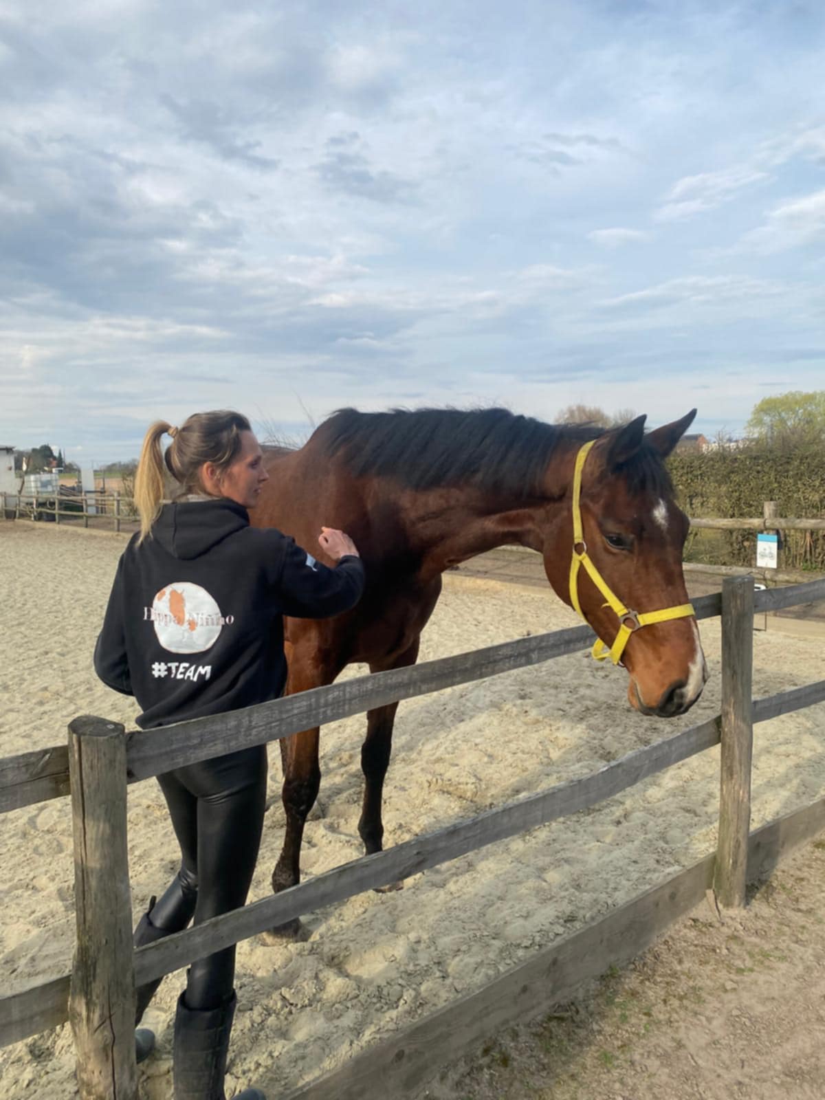 Monpy - Montpellier op zijn paspoort - heeft een carrière als racepaard achter de rug. Hij is de grootste van onze kudde, maar heeft tegelijk ook het grootste hart. Hij is de meest betrouwbare en de rustigste. Daarnaast kan hij wel eens humeurig zijn bij het opzadelen en het poetsen.